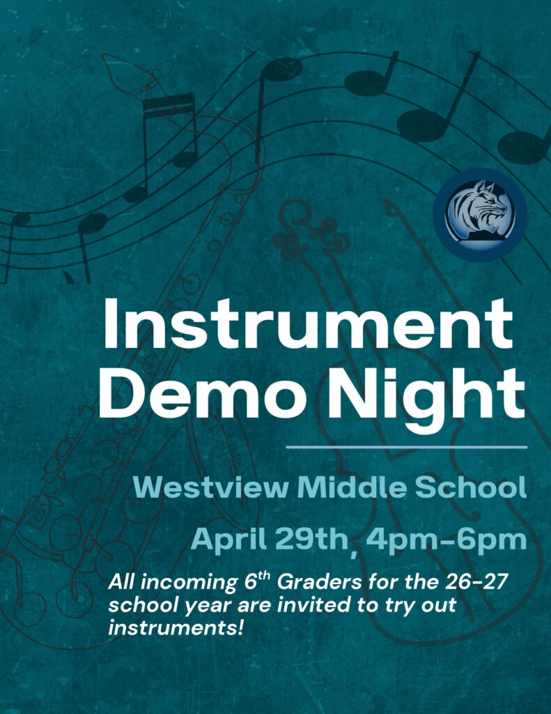 ¡Atención, futuros Wildcats! La Noche de demostración de instrumentos tendrá lugarel miércoles 29 de abril, de 16:00 a 18:00,para los alumnos que el año que viene entrarán en 6.º curso. Todos los alumnos que vayan a entrar en 6.º curso deben cursar una asignatura de música, ¡así que no faltéis para poder elegir primero!