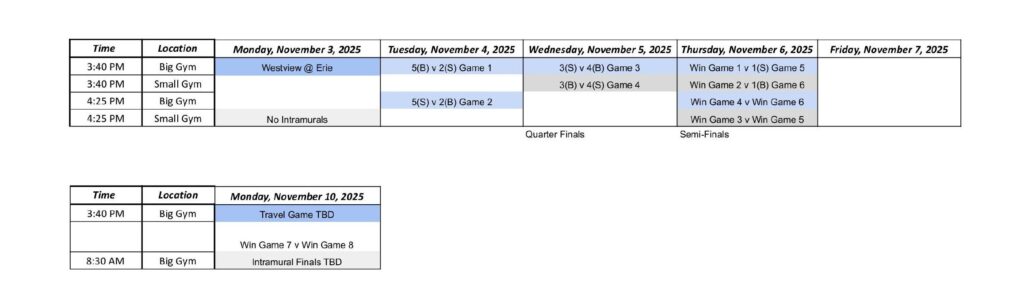 • Boy’s Basketball Game against Erie at Erie – Monday, November 3rd at 3:30