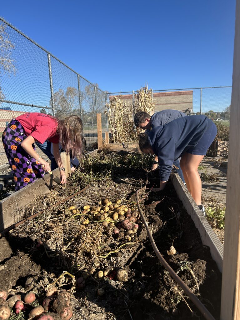 The Garden Club harvested their final bed of potatoes last week! They dug up about 30 pounds in total—some students took potatoes home, and the rest were donated to the Westview kitchen.