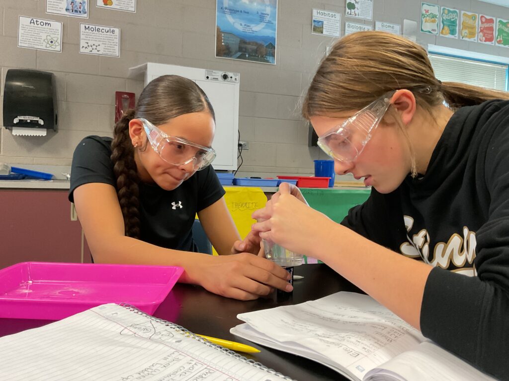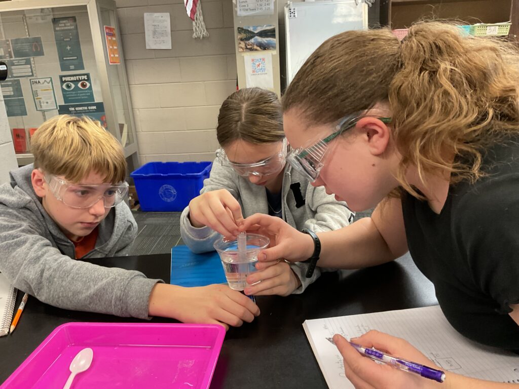 Students in Mr. Helmus’s class are discovering the science behind electrolysis.