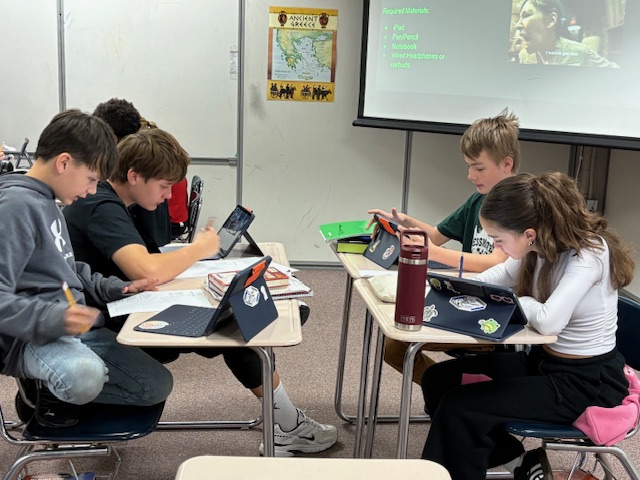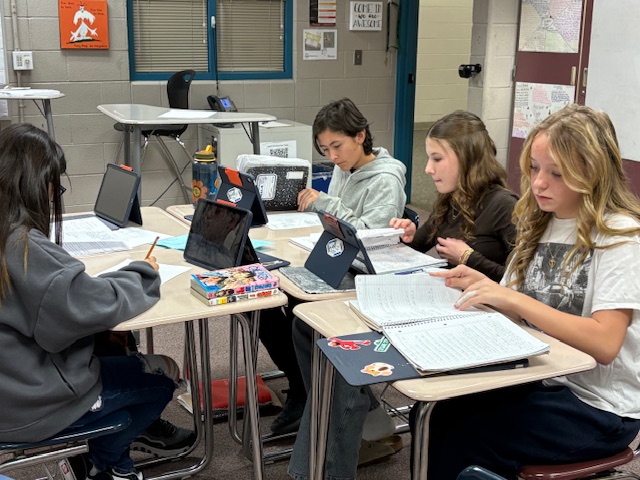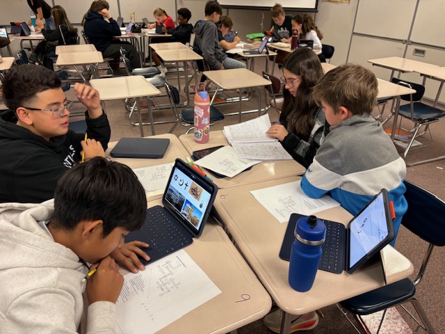 Our 7th graders work together on a first semester retrieval escape room challenge.